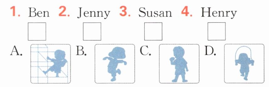 五、(2025·连云港灌南县期末)根据描述,将人物的名字与其影子(shadow)相匹配。