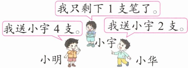 小宇原来有多少支笔? $□$ 小宇现在一共有多少支笔? $□$ 小宇用了多少支笔? $□$
