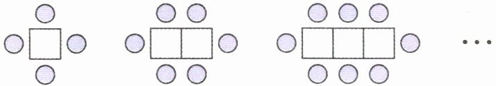 3. 新情境 长桌宴 “长桌宴”是苗族宴席的最高形式与隆重礼仪,一般用若干张桌子排成一排,如图。1张桌子可以坐4人,2张桌子拼在一起可以坐6人……找规律,填一填。