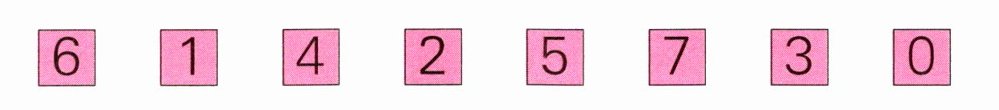 $\boxed{6}$ $\boxed{1}$ $\boxed{4}$ $\boxed{2}$ $\boxed{5}$ $\boxed{7}$ $\boxed{3}$ $\boxed{0}$