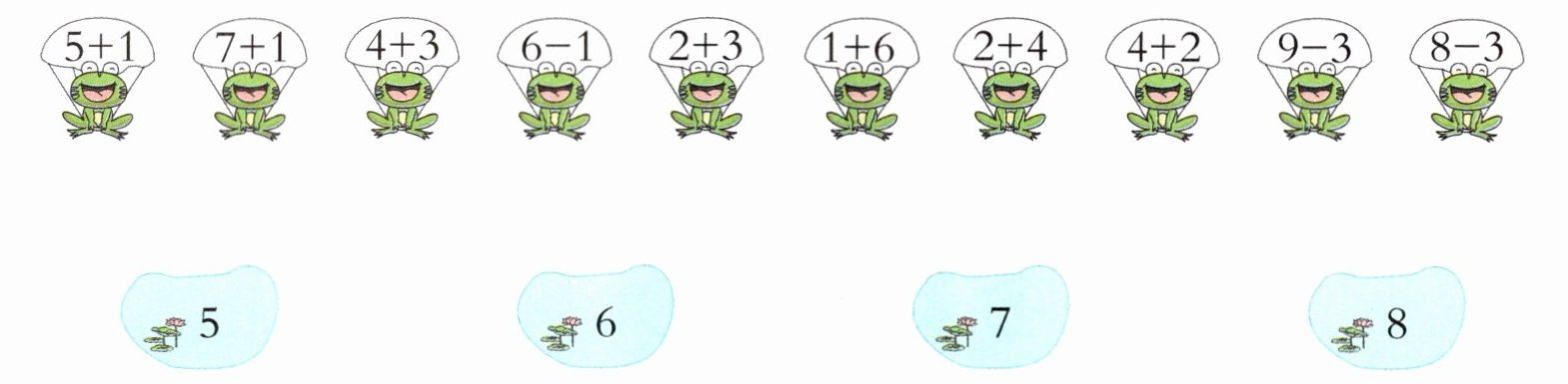 四、青蛙各跳进哪个水池?连一连。(每条线1分,共10分)