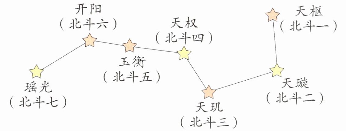 六、乐乐在纸上画出了北斗七星并涂上了颜色,请你根据北斗七星的颜色列出一道加法算式和一道减法算式。(每式4分,共8分)