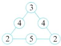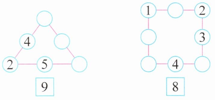 在○里填合适的数,使每条线上三个数相加都等于□里的数。