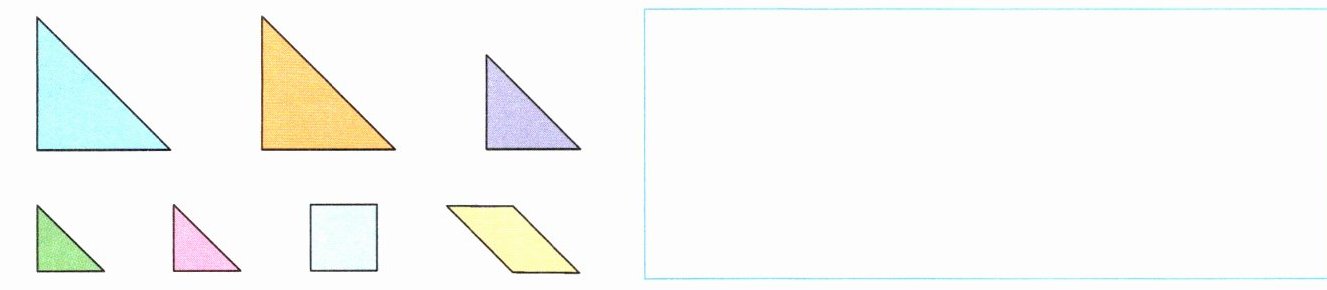 3. 用下面这些彩纸拼出你喜欢的图形,并在框里画出来。