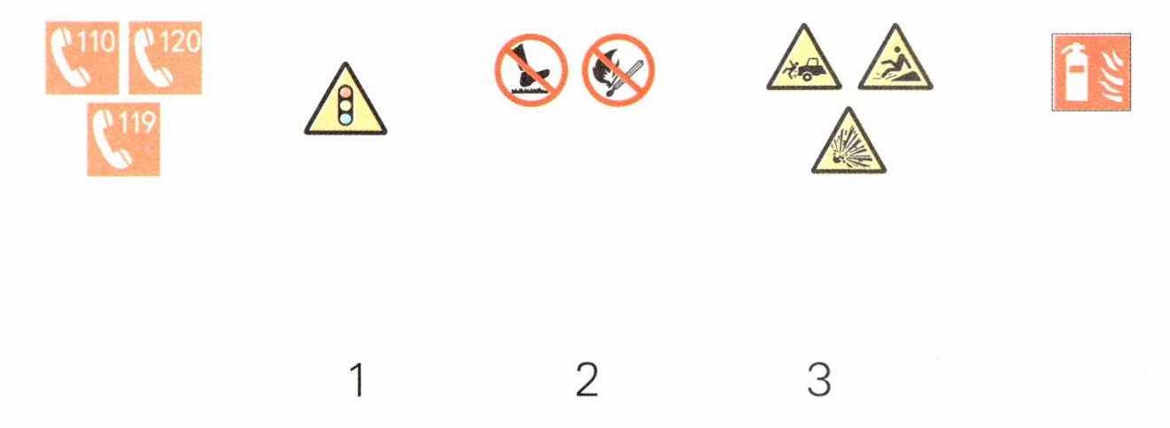 1. 小朋友,你认识下面的安全标识吗?数一数,连一连。