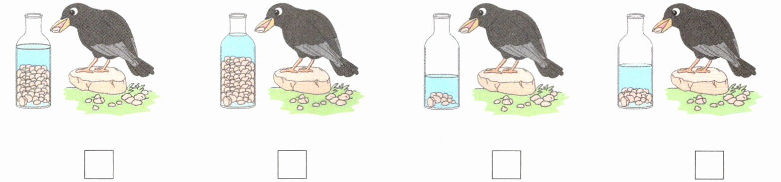 3. 新情境 乌鸦喝水 乌鸦把小石子一个一个地放到瓶子里,按瓶子中石子数量由少到多的顺序给下图排序。(写数字)