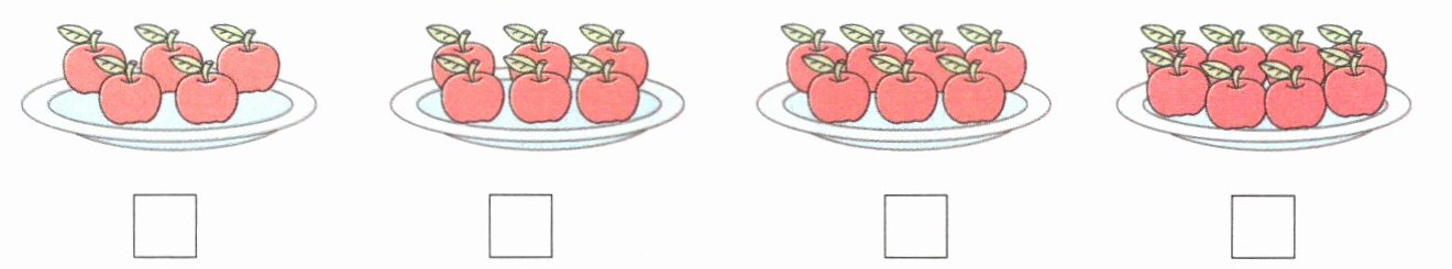 2. 新趋势 学科融合 同学们都听过童话故事《白雪公主》吧! 这天白雪公主端来一些苹果,分给七个小矮人和自己一人一个。哪盘苹果是白雪公主端来的? 在正确答案下面的□里画“√”。