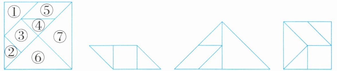 2. 下面三幅图分别是用七巧板中的哪几块拼成的?请你在图中标上序号。