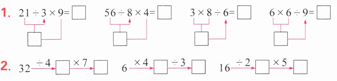 二、先把乘法口诀补充完整,再写出乘法和除法算式。(共10分)
