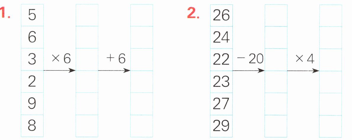 1. 30 36 36 42 18 24 12 18 54 60 48 54 2. 6 24 4 16 2 8 3 12 7 28 9 36