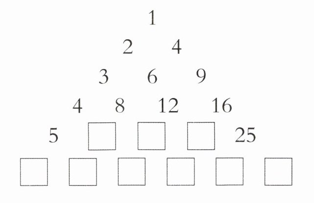 在下面的数字塔中,找规律填空。