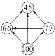 把 45,66,100,77 这四个数填到○里,要求每个箭头起始处的数大于箭头所指的数。