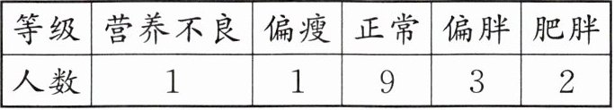 (1)31 (2)正常 7(3)该小学四年级二班男生体重不正常的人数较多,建议他们均衡营养,合理饮食,适当运动,养成良好的运动习惯。(合理即可)