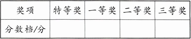 2. 新情境 时事热点 2025年2月11日17时30分,长征八号甲运载火箭顺利点火升空,标志着我国新一代运载火箭家族的进一步壮大。某小学为了激励学生学习科学知识,弘扬航天精神,特举办航天知识竞赛,入围选手的得分如下:84,83,73,94,89,87,79,97,89,65,83,93。学校准备设定特等奖1名,一等奖2名,二等奖3名,其余为三等奖。请你设定一下分数档。