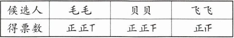 3. 四年级三班42名同学投票选一名班长(每人只许投一票,不能弃权不投票)。候选人是毛毛、贝贝和飞飞三人,计票中途统计结果如下表: