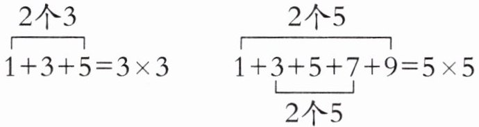 5.7×7 1+3+5+7+9+11+13+15+17+19+21=11×11 方法点拨:观察前两个算式可发现,两个乘数都是加数中最中间的数。