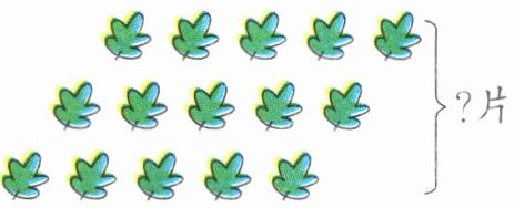 (1)每排有5片树叶,有3排,求一共有多少片,就是求3个5相加是多少,用乘法计算,列式是3×5或5×3,想口诀“三五十五”求出积。
