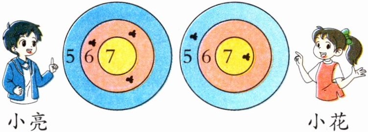 5. 小亮和小花在玩打靶游戏,每人都射中了 3 枪。