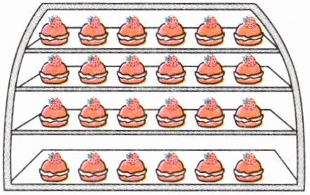 3. 蛋糕店做了一批小蛋糕,每层有( )个,有( )层,一共做了( )个。