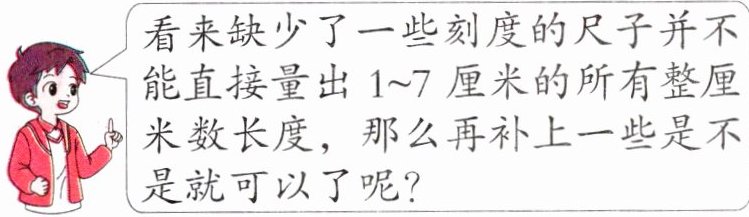 看来缺少了一些刻度的尺子并不能直接量出1~7厘米的所有整厘米数长度,那么再补上一些是不是就可以了呢?
