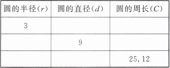 | 圆的半径(r) | 圆的直径(d) | 圆的周长(C) |