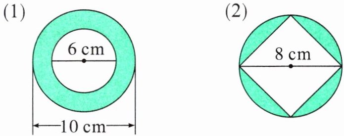 (2)半圆的面积是圆面积的$\frac{1}{2}$,列式是$3.14×(12÷2)^{2}×\frac{1}{2}=56.52(cm^{2})$。