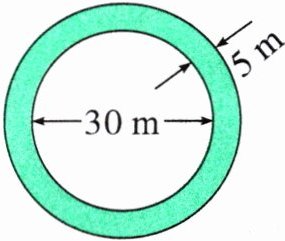 分析:扩建后旱冰场增加的面积是圆环的面积。内圆半径是$30÷2=15(m)$,外圆半径是$15+5=20(m)$,利用$S_{圆环}=S_{外圆}-S_{内圆}$计算出面积。
