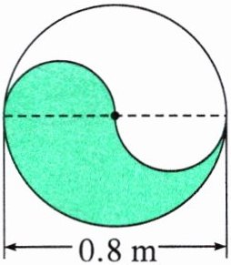 解析:把题图中2个小半圆组合成一个小圆。小圆的周长=大圆周长的$\frac{1}{2}$,即涂色部分周长等于大圆的周长。把上面小半圆补到下边空白处,涂色部分面积就是大圆面积的$\frac{1}{2}$。