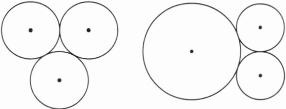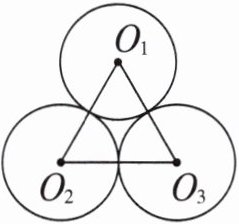 解析:三个圆大小相等,三角形三条边长都是圆的2条半径,围成的三角形是等边三角形,每个内角都是60°。