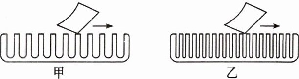 7. 如图甲、乙所示,用薄塑料片在两把塑料梳子的齿上用同样的速度分别划一次,则(