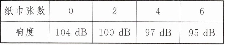 为了更准确地比较隔音效果,小明使用分贝仪进行响度的测量。选用纸巾进行实验,改变包裹声源的纸巾的张数,在