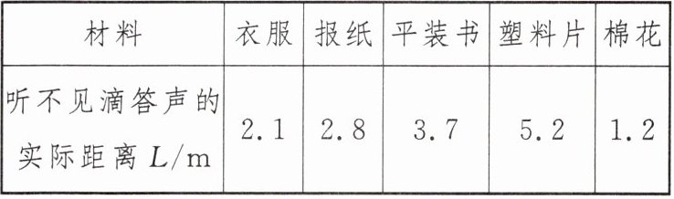 (2)把闹钟放到一个鞋盒里,将衣服盖在鞋盒四周,然后逐渐远离盒子,直到听不见滴答声,用卷尺量出此时人离盒子的距离,并记下这个距离 $ L $。