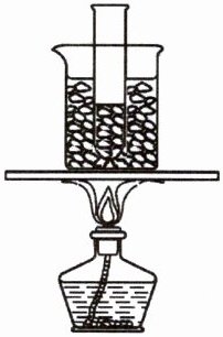 8. 把盛有碎冰块的大试管插入盛有碎冰块的烧杯中,如图所示。用酒精灯对烧杯底部慢慢加热,当烧杯中的冰块有大半熔