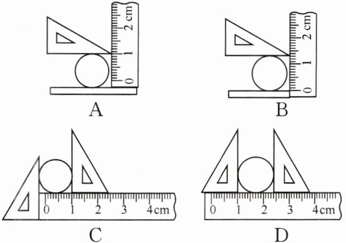 1. 如图所示为测量硬币直径的几种方法,其中正确的是(
