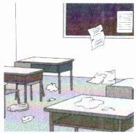 1. Was the classroom messy 2. Let's keep the classroom clean 3. But how can we keep it clean 4. We can put the rubbish in the bin 5. We can pick up the things from the floor