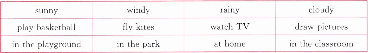 1. It was windy. I flew kites in the park. 2. It was rainy. I watched TV at home. 3. It was cloudy. I drew pictures in the classroom.