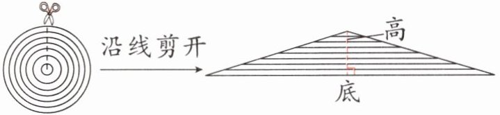 (1)如图,将一个草绳编织成的圆形茶杯垫沿一条半径剪开后,将草绳展开并排列起来,得到一个近似的三角形。下面说法正确的有(