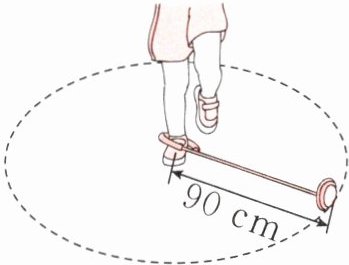 1. 阳光小学课间增加了跳跳球活动,玩跳跳球时需要一只脚在圈内,将跳跳球旋转起来,另一只脚跳起躲避球。如下图,如果站在圈内的脚在跳动时位置不变,那么每个人的活动面积至少是多少平方米?