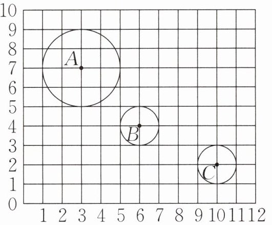 (2)以点 B 为圆心的圆先向( )平移( )个方格,再向( )平移( )个方格,就可以与以点 C 为圆心的圆重合。