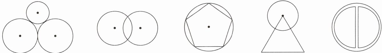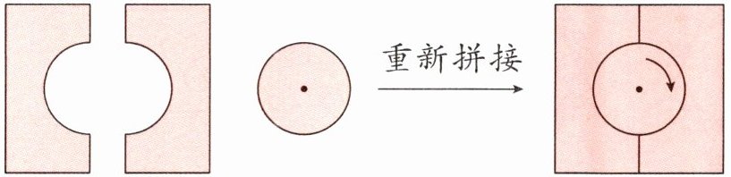5 如下图,先从一张正方形纸上剪下一个圆,再将所有的部分拼起来,沿着圆心(中心点)转动剪下的圆,你发现了什么?若剪下的是正方形或等边三角形呢?动手试一试吧!