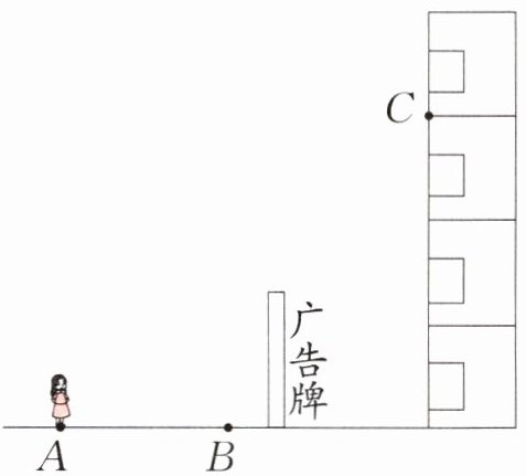 (2)小芳走到 B 点时,还能看到大楼吗?请用画图的方法在图上证实你的想法。