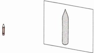 5. 下图是一支笔在屏幕上的投影,请你根据笔和它的投影,用“△”标出光源所在的位置。