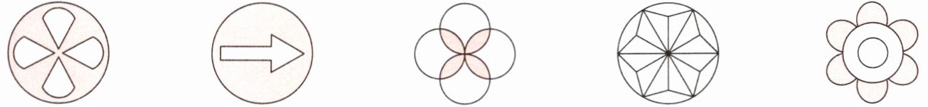 5 请你分别用下面的大圆和小圆,设计出生活中常见的物品或标志。