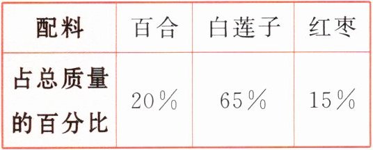 4 下面是一种百合莲子粉的配料表,400g这样的百合莲子粉中有多少克百合?多少克这样的百合莲子粉中有75g红枣?