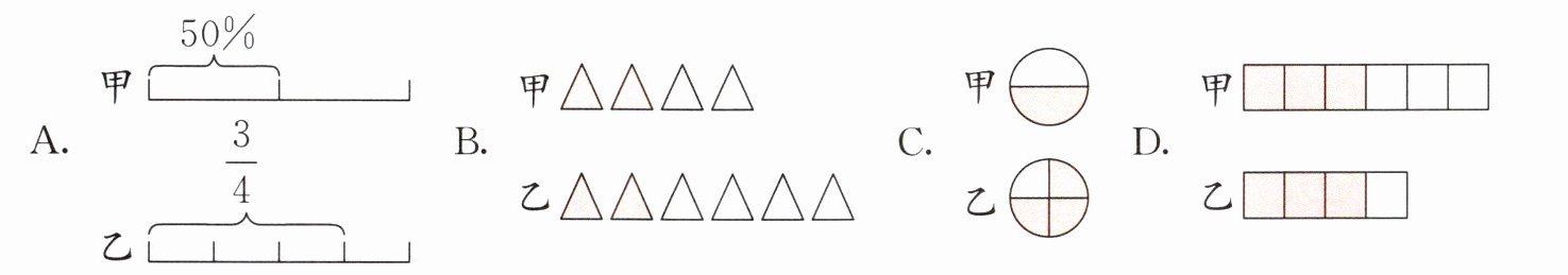 5. 已知甲数的 50%等于乙数的$\frac {3}{4}$,下面能正确表示这一数量关系的是(