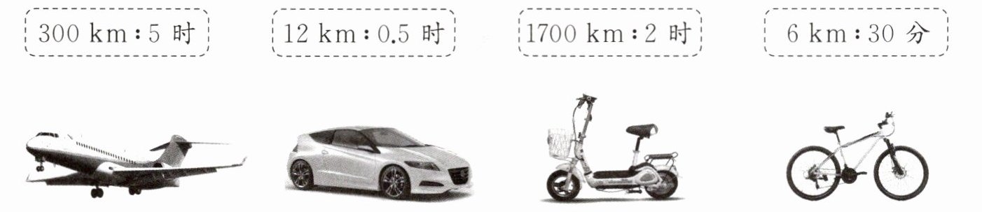 3 根据生活实际,将行驶路程与所用时间的比和对应的交通工具连一连。