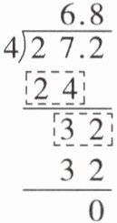 2. (算理理解)橙子每千克4元,27.2元一共能买多少千克橙子?关于竖式虚线框中的数表示意义,下列说法正确的是(