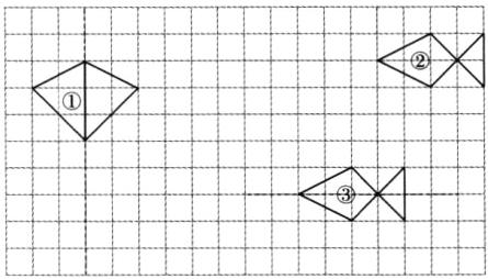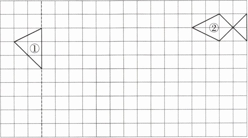 (1)以虚线为对称轴,画出图①的轴对称图形。