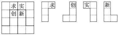 5.把下图分成形状、大小和面积都相同的四块,并且每块上都有一个字。画一画,剪一剪(用线画出剪的痕迹)。