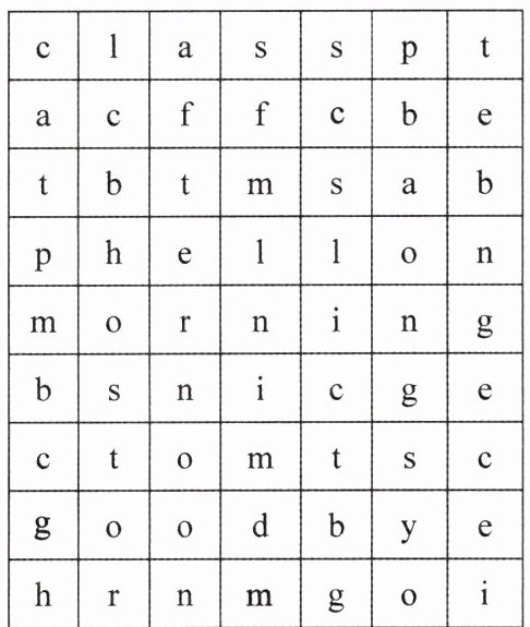 一、圈出字母方框中隐藏的单词,并用这些单词填空,补全下面的句子或对话,注意大小写。